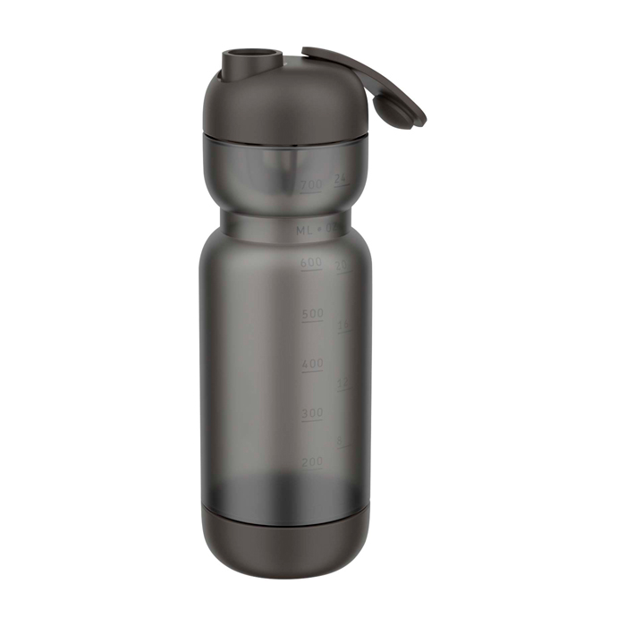 La borraccia sportiva Shaker da 800 ml consente di ottenere facilmente frullati senza grumi. È dotata di un miscelatore incorporato e di un indicatore di misura per un dosaggio preciso, nonché di un tappo ermetico. La parte inferiore può essere rimossa per facilitarne la pulizia. Ideale durante gli spostamenti o in palestra.