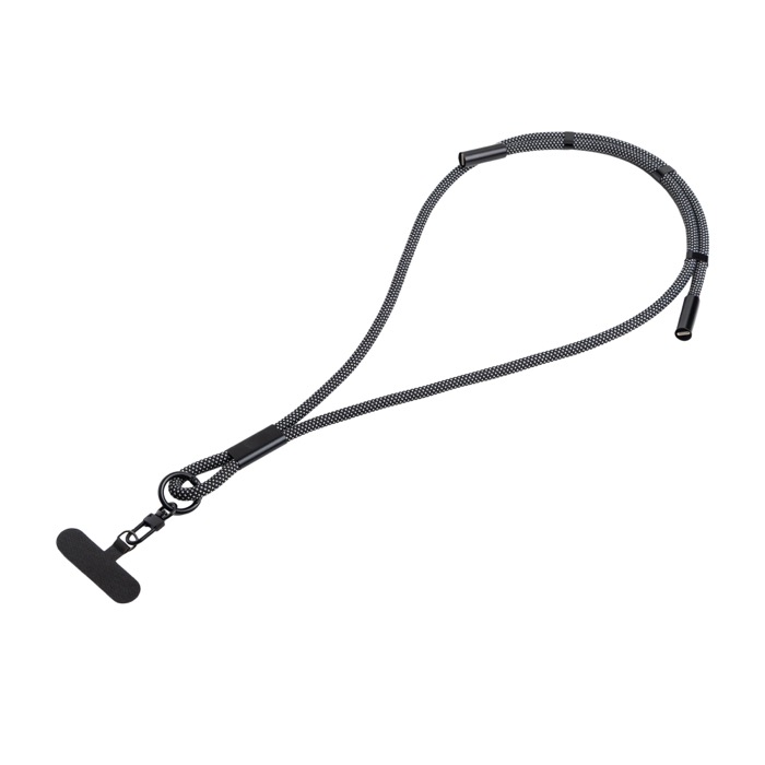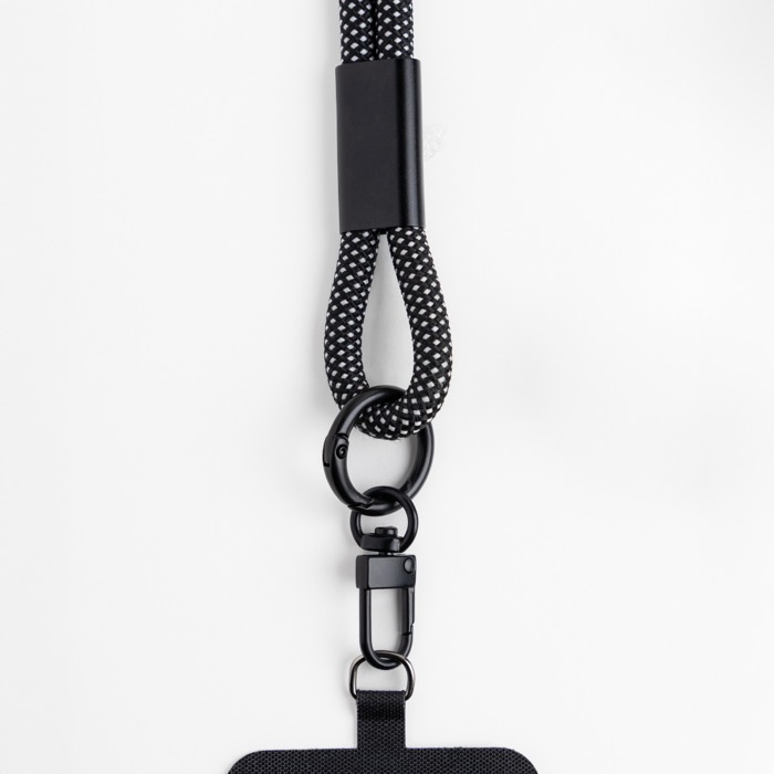 Resistente lanyard con ricarica rapida USB-C e cordoncino regolabile. Mantieni i tuoi dispositivi sicuri e a portata di mano con la praticità del hands-free.
