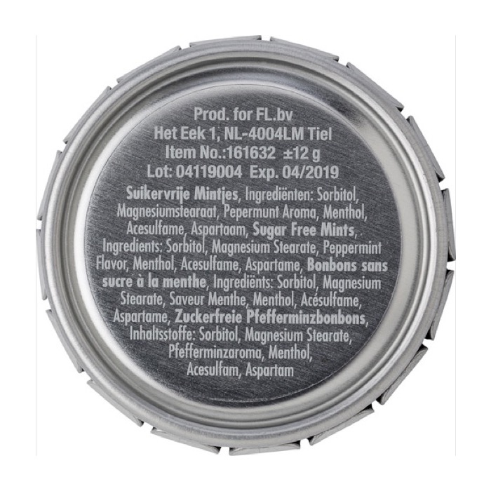 Una delle opzioni più popolari quando si tratta di fare un regalo sono le caramelle alla menta. Questo è dovuto al fatto che sono rinfrescanti e hanno un sapore molto caratteristico. Per questo, ti consigliamo di includere nella tua propaganda questa scatola con coperchio clic clac, che contiene 40 caramelle. Inoltre, tengono conto della salute del destinatario, poiché non contengono zucchero. La scatola è metallica e accetta tecniche di marcatura come l'incisione laser o la stampa digitale. Infine, se hai un'esigenza urgente, questo prodotto è adatto per il trasporto espresso.