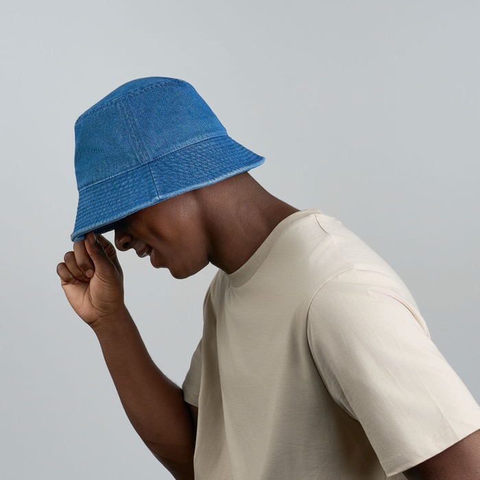 Cappello tipo Panama in denim di cotone riciclato tinto con DyStar®