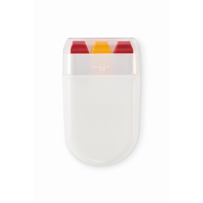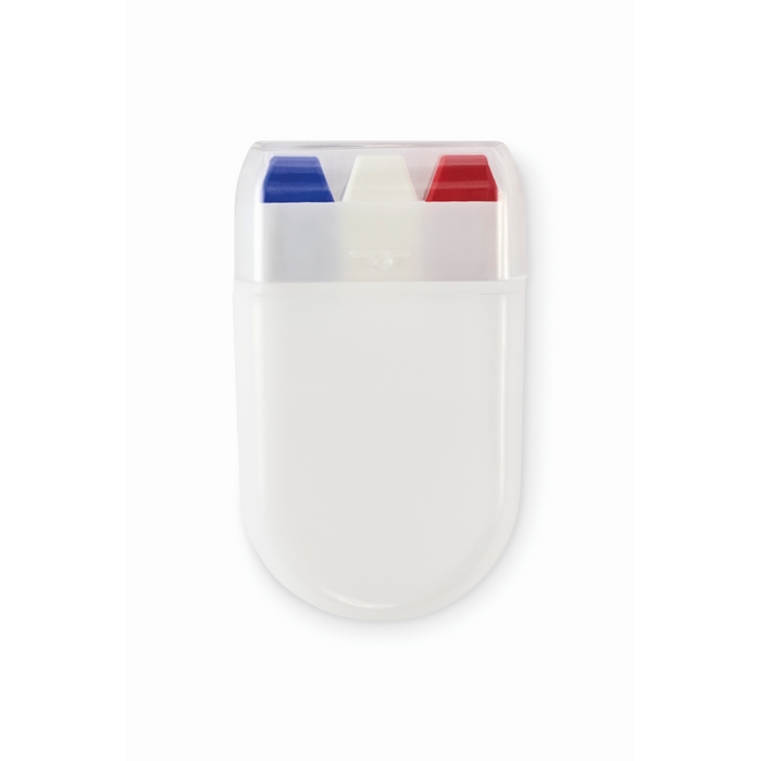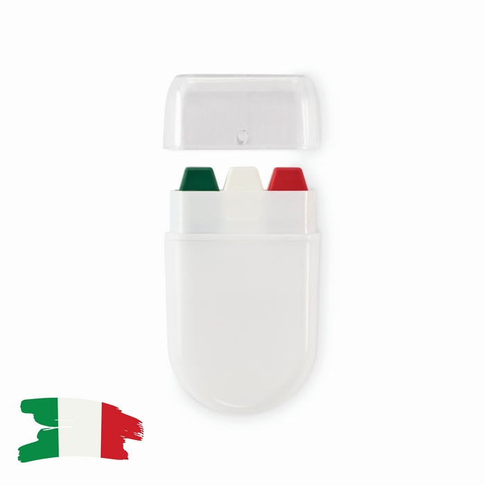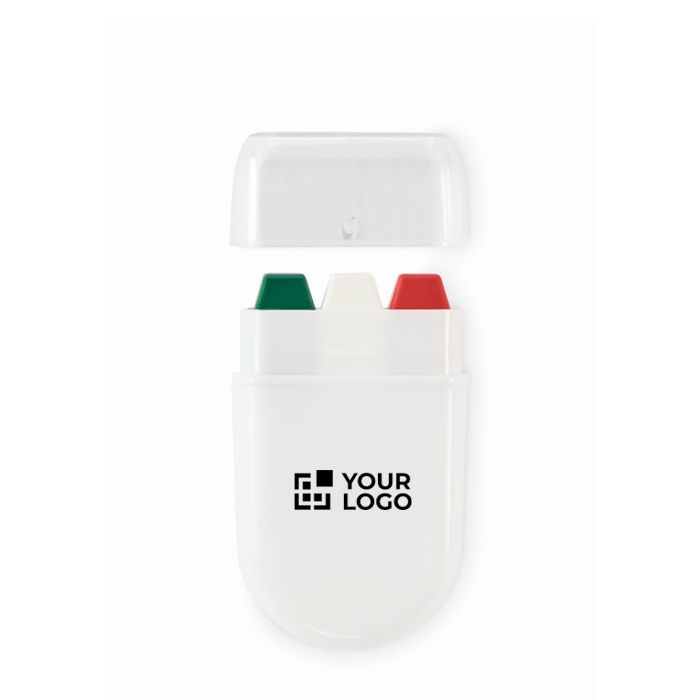 Stick di pittura per il corpo con colori di bandiere nazionali e composizione di pittura a cera, presentato in una custodia di plastica. Formato compatto e pulito da portare in tasca, nello zaino o in un kit per eventi. Il guscio protegge lo stick e facilita un’applicazione rapida sulla pelle, con chiusura tramite cappuccio per riporlo dopo l’uso. Opzione pratica per azioni puntuali all’aperto o al chiuso. Consigliato per l’animazione di eventi, fiere, promozioni sportive o campagne tematiche di marca.