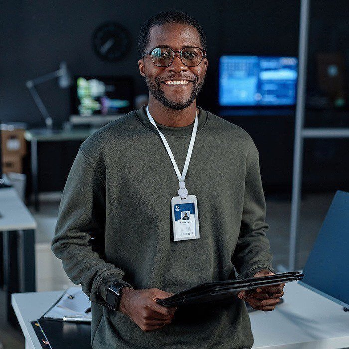 Lanyard in poliestere bianco con identificatore estensibile e portabadge in plastica removibile. Include una custodia con parte posteriore opaca e frontale traslucida per mantenere il pass visibile, oltre a un gancio a clip per fissarlo rapidamente. La corda estensibile arriva fino a 70 cm, facilitando l’accesso a tornelli, banconi o lettori senza togliere il badge. Soluzione pratica per il controllo accessi, l’assistenza al pubblico e i badge in fiere, congressi o ambienti aziendali.