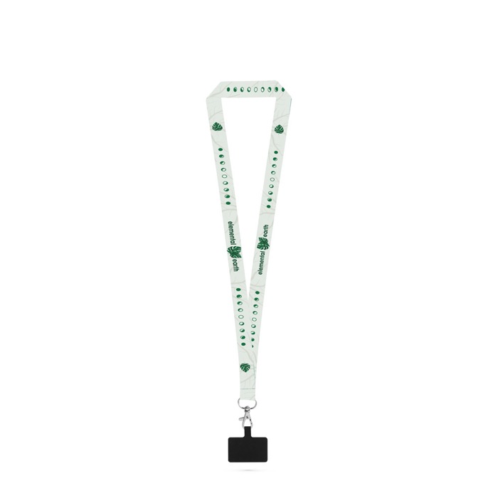 Lanyard in poliestere riciclato (plastica riciclata) sublimabile, con moschettone e supporto per smartphone per portare badge o chiavi con accesso rapido. Consente la personalizzazione su entrambi i lati per mantenere il logo visibile da qualsiasi angolazione, con un’area di stampa di 20 x 940 mm. Prodotto in Europa, offre una soluzione pratica per l’uso quotidiano in fiere, visite in stabilimento o eventi interni. Consigliato per badge del personale, welcome pack o attività di branding aziendale.