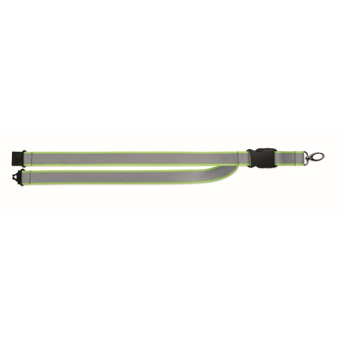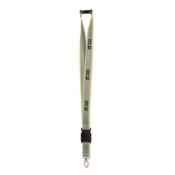 Lanyard riflettente in RPET con chiusura di sicurezza e larghezza di 2,5 cm