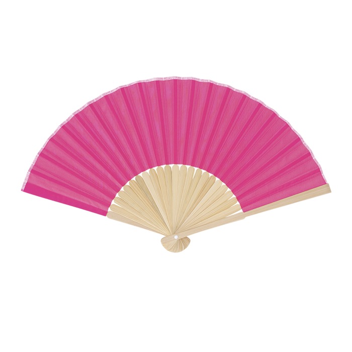 Ventaglio con stecche in bambù e tessuto in poliestere in colori