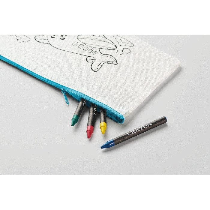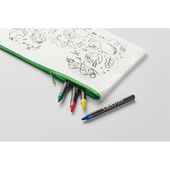 Astuccio per bambini in non woven da colorare, pensato per attività in eventi e campagne. Include 4 matite colorate affinché l’utente possa personalizzare il design sul momento. Formato leggero e maneggevole, facile da distribuire in fiere, iniziative nel punto vendita o pack di benvenuto. Superficie predisposta per colorare, adatta a una personalizzazione semplice e all’uso immediato. Opzione pratica per promozioni rivolte a famiglie, scuole, asili nido o attività aziendali con pubblico infantile.