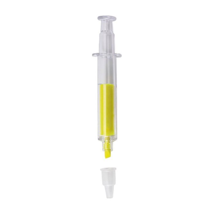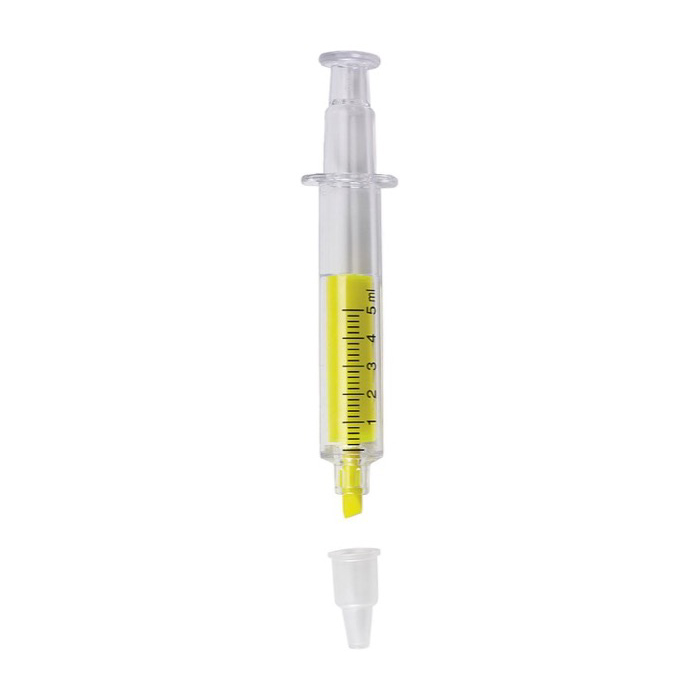 Evidenziatore originale a forma di siringa, realizzato in ABS. Aggiungi un tocco creativo alle tue presentazioni e evidenzia idee con design unico.