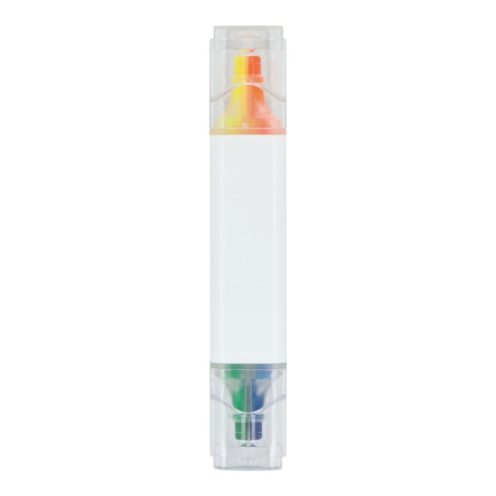 Evidenziatore fluorescente in plastica con quattro colori di scrittura in un unico pezzo. Include punte a scalpello per evidenziare con diversi spessori e passare rapidamente da un tratto all’altro in base al tipo di testo. I colori giallo, arancione, verde e blu aiutano a organizzare documenti, segnare le priorità o separare le sezioni in appunti e dossier. Formato compatto e facile da riporre in astucci, cassetti o vaschette da ufficio. Opzione pratica per azioni di brand in fiere, formazioni o campagne interne.