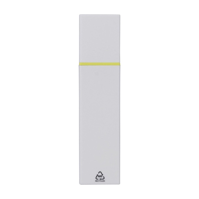 Evidenziatore in plastica riciclata con corpo bianco e dettaglio colorato, pensato per l'uso quotidiano in ufficio, fiere e azioni interne. Integra chiusura a clic per aprire e chiudere con una sola mano e aiuta a evitare macchie in borse o cartelle. Offre la garanzia che non si seccherà per 2 anni, utile per avere unità disponibili in reception o sale riunioni. Include marcatura del logo della plastica riciclata sul corpo. Viene consegnato in bustina di plastica.