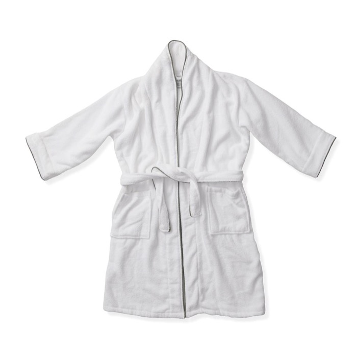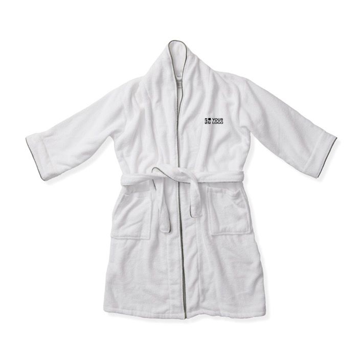 Per fare un regalo legato al benessere e che si distingua, optate per questo accappatoio in cotone personalizzato con vari dettagli per una finitura ideale.