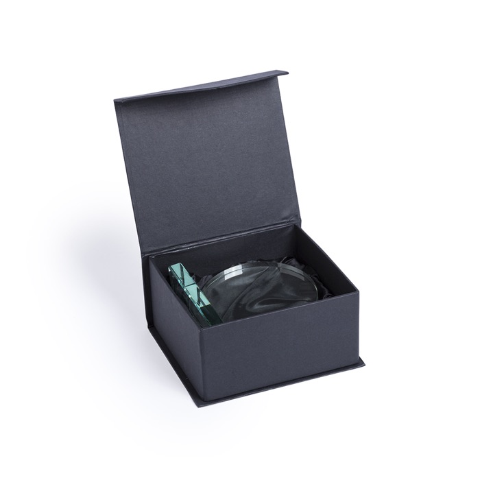 Trofeo in vetro rotondo base quadrata in scatola regalo Round Winner