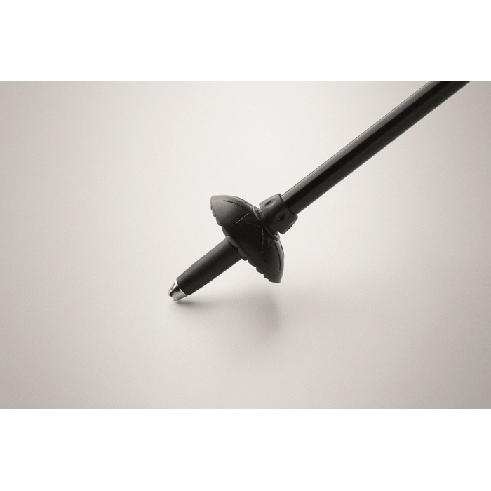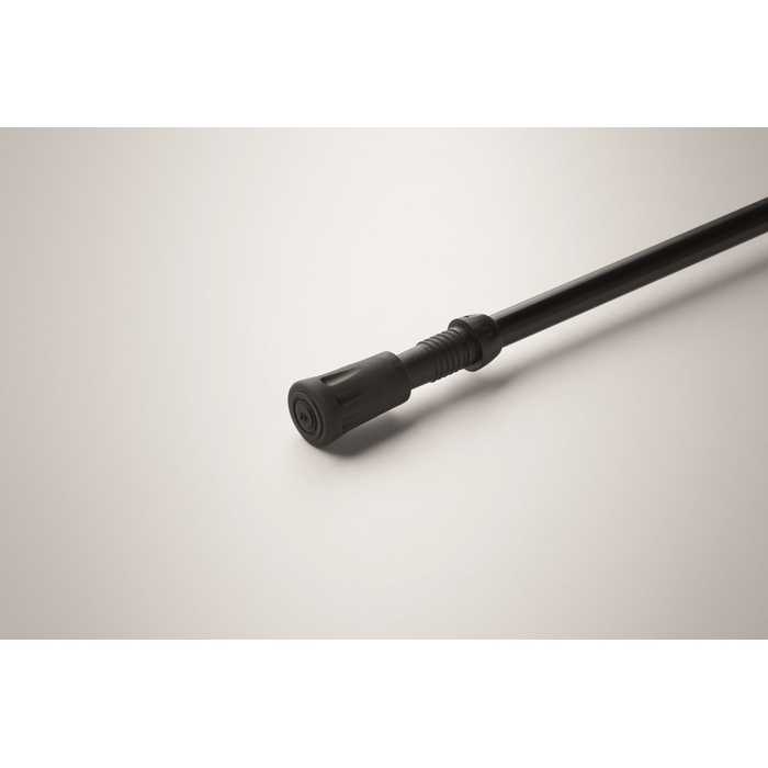 Bastone da cammino con impugnatura in EVA, laccetto da polso e puntale in gomma per un appoggio sicuro. Include una rotella da fango, pensata per terreni morbidi e percorsi all’aperto. L’altezza si regola da 105 a 120 cm, facilitando l’adattamento a utenti diversi durante eventi o attività aziendali. Consegnato in una borsa in RPET con cordino, pratica per il trasporto e lo stoccaggio. Utile per iniziative di team building o kit di benvenuto.