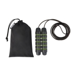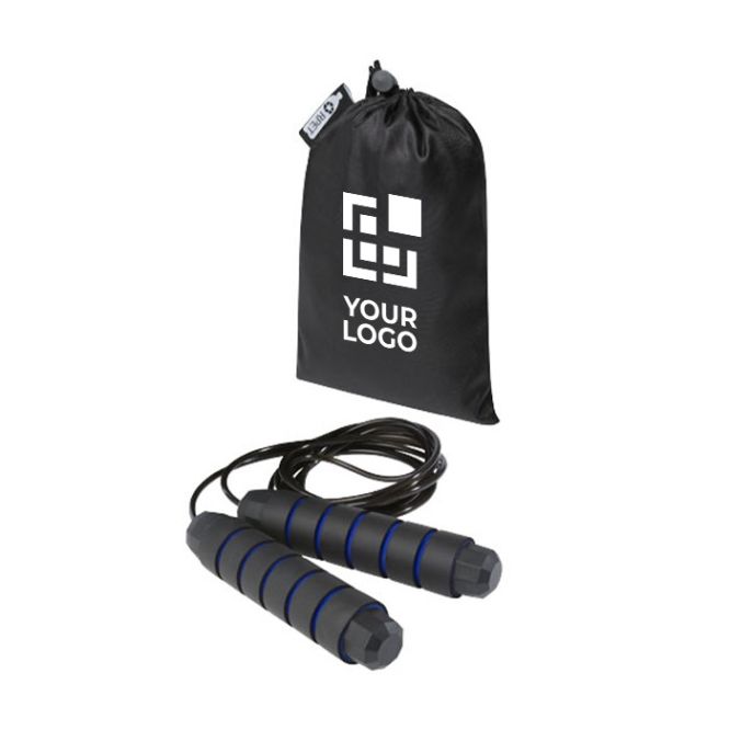 Corda per saltare professionale per adulti con impugnature ergonomiche in morbida gommapiuma, per una presa sicura e confortevole durante gli allenamenti. La lunghezza della corda è di 310 cm ed è adatta per adulti alti fino a 195 cm. La lunghezza della corda è regolabile, dispone inoltre di un cuscinetto a sfera integrato di elevata qualità caratterizzato da una rotazione di 360° per garantire che la corda ruoti facilmente evitando i grovigli. Fornita in un sacchetto da 21 x 14 cm realizzato in plastica PET riciclata, la cui superficie è ideale per stampare un logo.