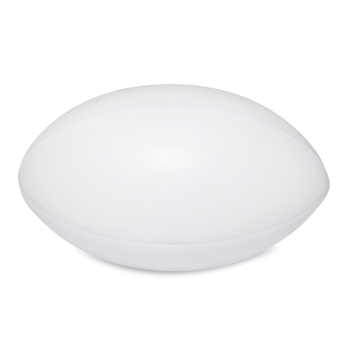 Questa pallina antistress pubblicitaria a forma di pallone da rugby è personalizzabile con il logo aziendale per fare un regalo durante eventi sportivi.