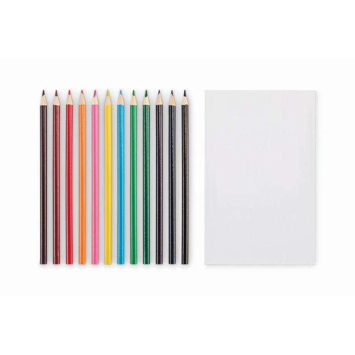 - Include 50 fogli di carta riciclata e 12 matite colorate