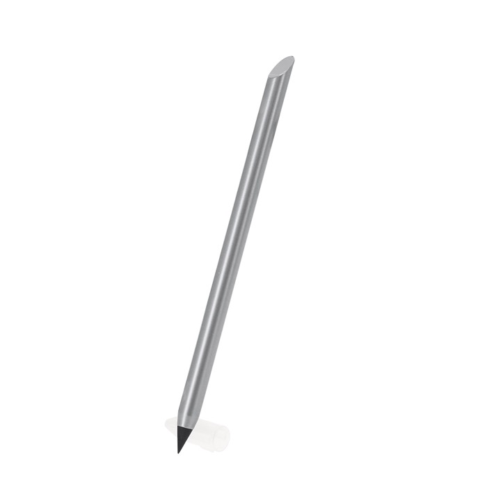 Matita eterna realizzata in alluminio riciclato. Riutilizzabile e con scrittura infinita, per usare sempre la stessa matita senza produrre rifiuti. Include targhetta in alluminio riciclato sulla parte superiore e copertura protettiva per preservare la punta in grafite.