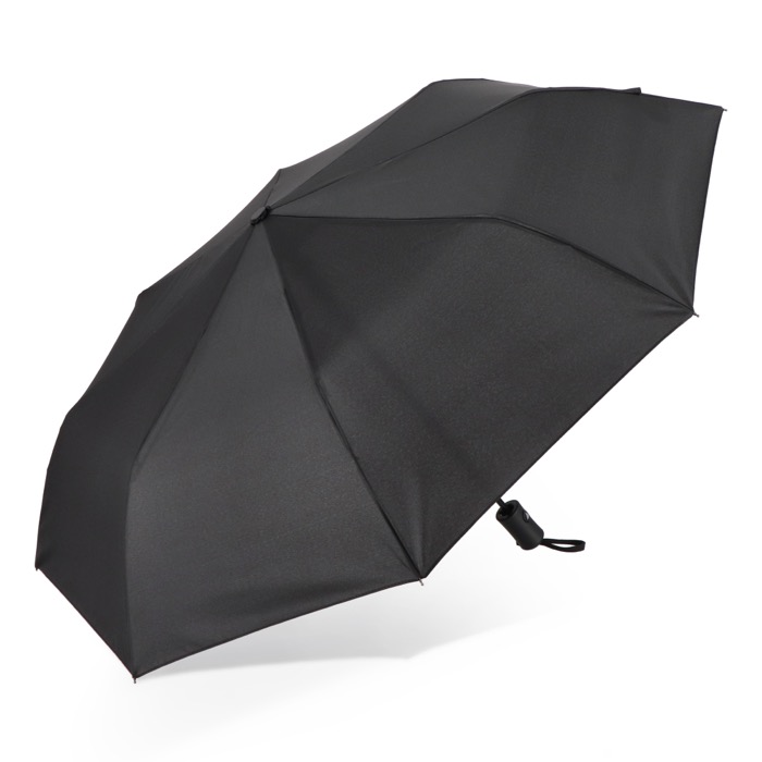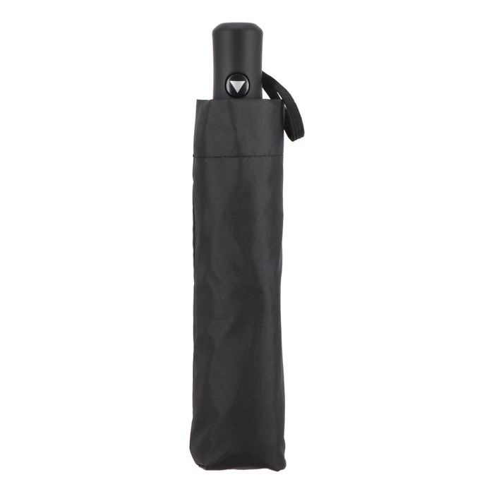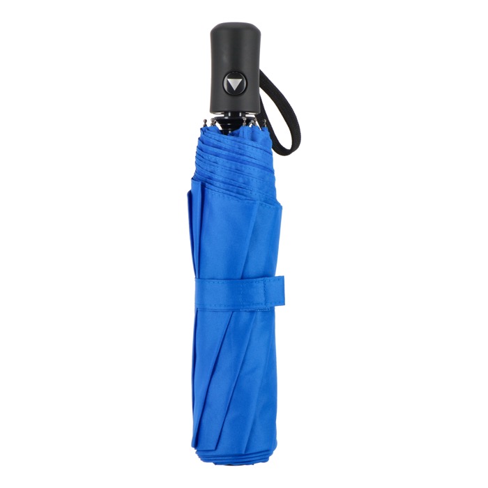 Ombrello pieghevole da 21,5" con struttura in fibra di vetro e telo in Pongee 190T resistente al vento. Apertura automatica e chiusura manuale. Include custodia, cordino e manico in ABS per una presa confortevole.