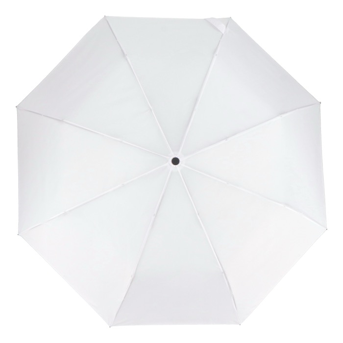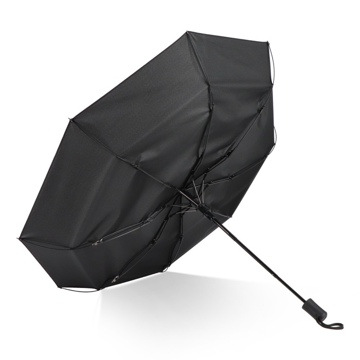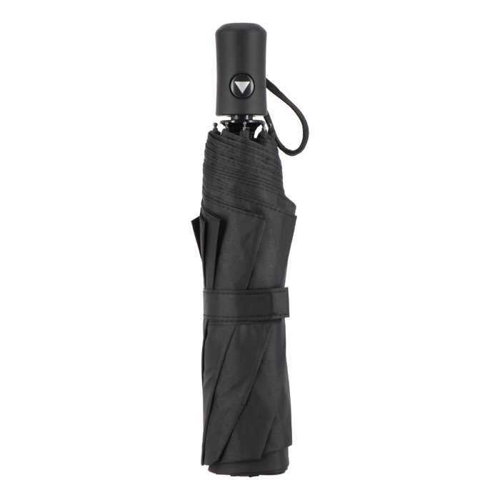 Ombrello pieghevole con struttura in fibra di vetro e copertura antivento. Apertura automatica e promozione garantita anche in giornate di pioggia e freddo.