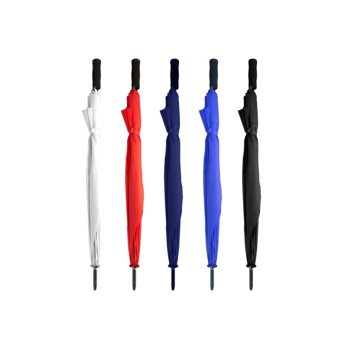 Offri massima protezione e alta visibilità al tuo brand sotto la pioggia con questo robusto ombrello, dal grande diametro e con manico ergonomico in gomma EVA.