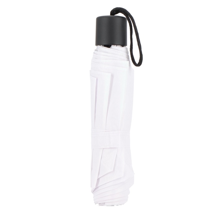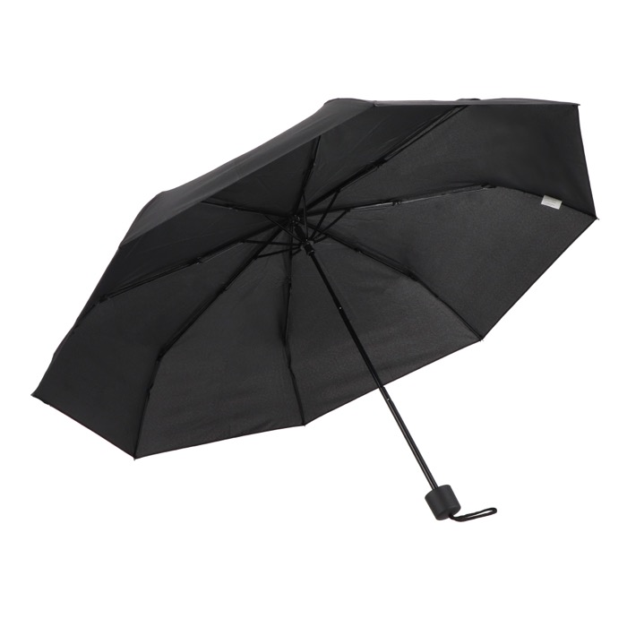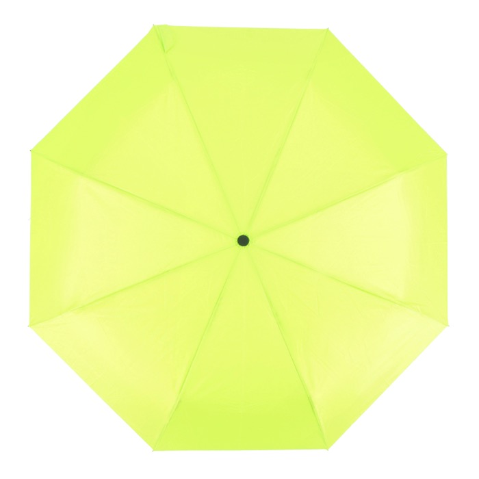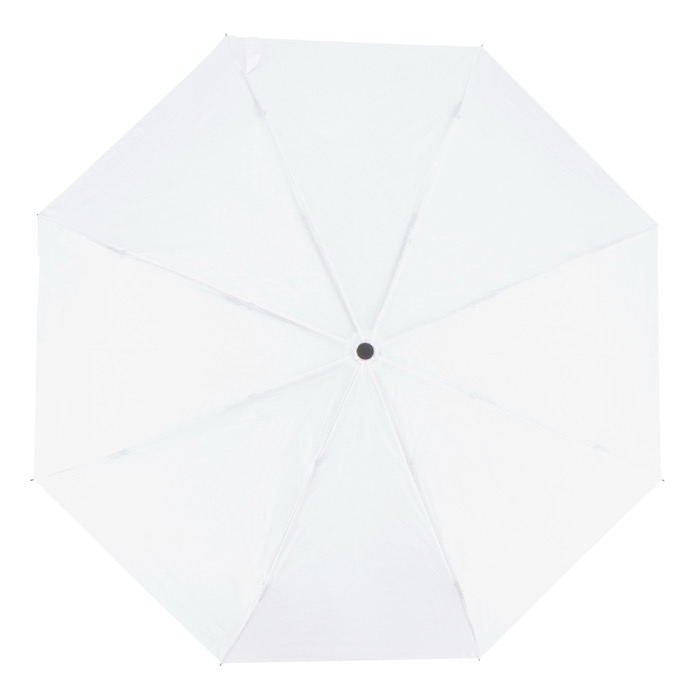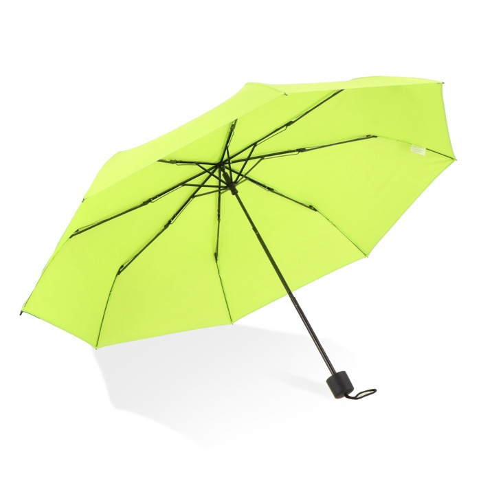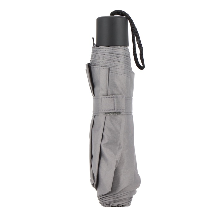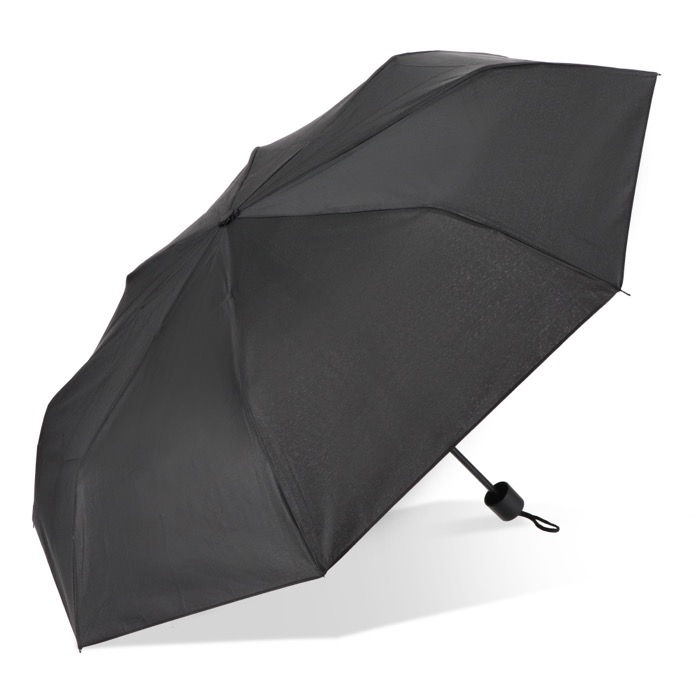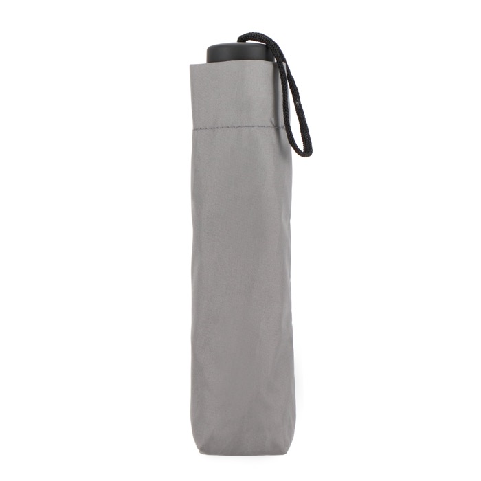 Ombrello pieghevole compatto con tettuccio in poliestere 190T, progettato per affrontare le condizioni di tempesta. Dispone di un manico in PP e di una custodia per riporlo facilmente. Apertura e chiusura manuale.