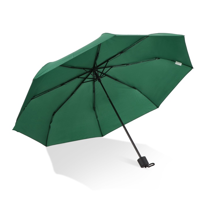 Ombrello compatto con cupola in poliestere 190T, manico ergonomico e custodia che facilita il trasporto. Offre protezione e comodità in ogni ambiente.