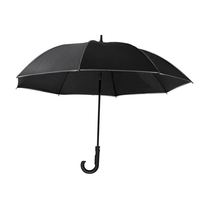 - Ombrello antivento nero con bordi catarifrangenti e 8 pannelli