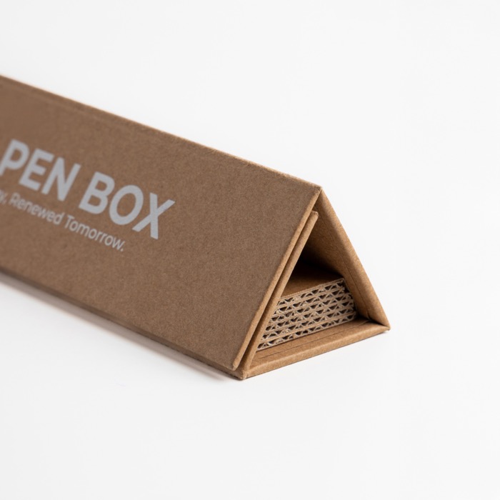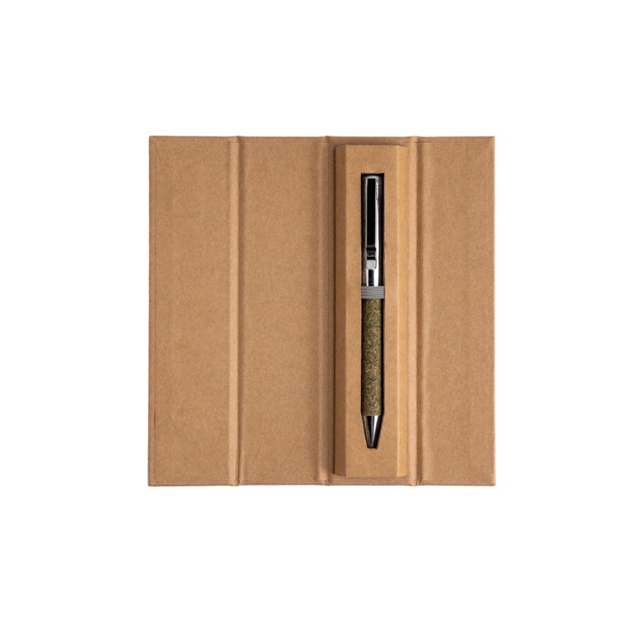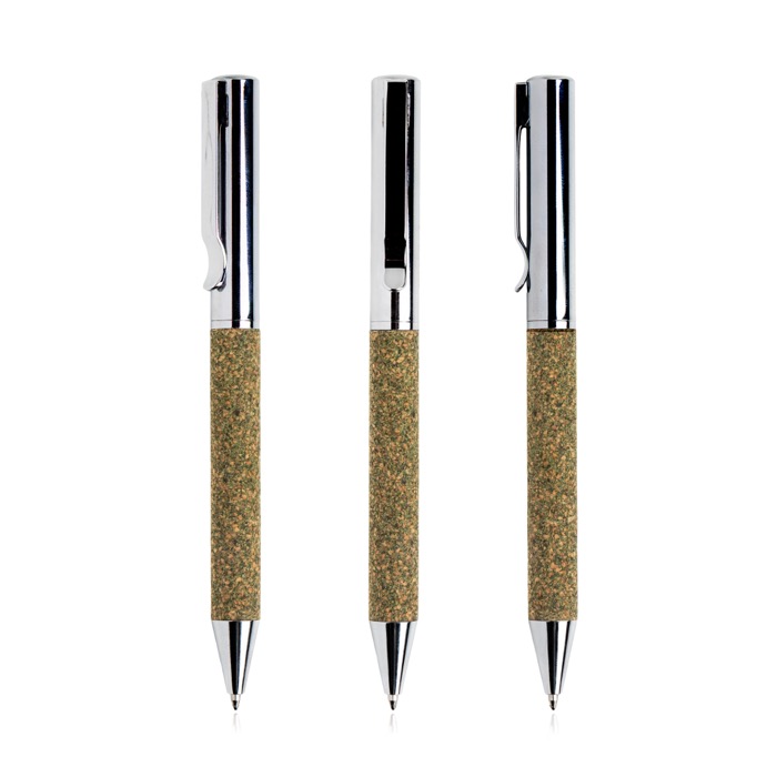 Penna in acciaio inossidabile ecologica dal design moderno e funzionale. Presenta parte superiore e punta metalliche, che offrono durabilità e finitura elegante. Il corpo è realizzato con residui di tè verde, rafforzando l’impegno ambientale del prodotto. Il clip sottile, con punta curva, è progettato per fornire maggiore stabilità quando si aggancia a quaderni o tasche. Dotata di meccanismo di apertura a rotazione e inchiostro nero, garantisce scrittura fluida e pratica per l’uso quotidiano. Un’opzione sostenibile con tocco contemporaneo. Presentata in astuccio triangolare di cartone.