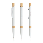 Penna elegante in alluminio riciclato, dettagli in bambù sostenibile.
