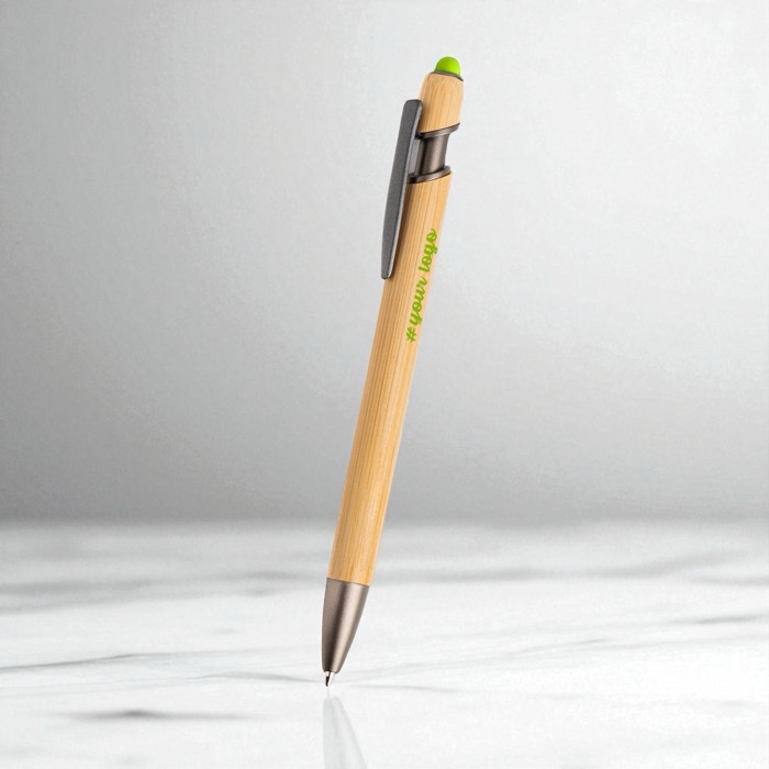 Penna con corpo in bambù e dettagli metallici che elevano la tua immagine professionale. La punta touch per schermi tattili facilita l’interazione digitale.