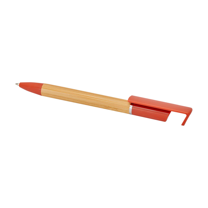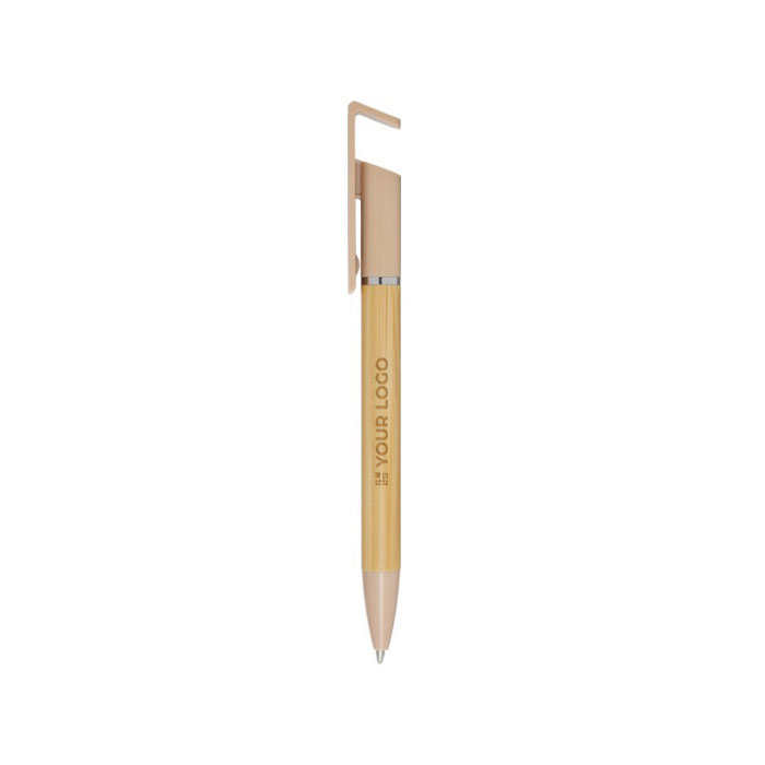 Penna in bambù con supporto per telefono. Combina stile e funzionalità in un unico accessorio. Un tocco pubblicitario creativo per qualsiasi evento.