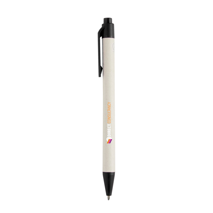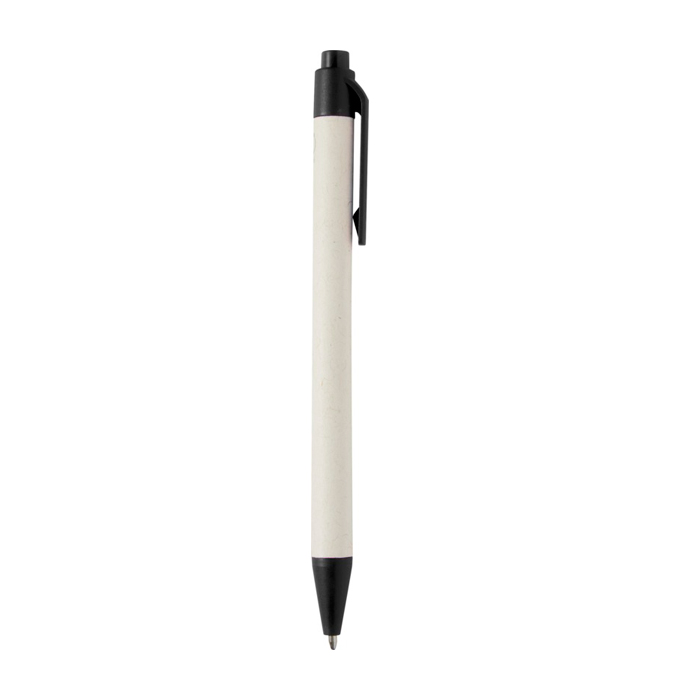 Penna a sfera con meccanismo a scatto e fusto realizzato con cartoni del latte riciclati (fino al 70%). Il pulsante, la clip e la punta sono realizzati in plastica PLA. I cartoni del latte usati vengono raccolti, selezionati, lavorati e convertiti in carta, trasformando così un semplice rifiuto in qualcosa di utile.
