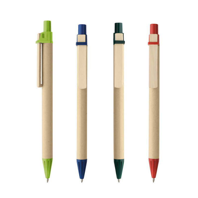 Penna ecologica che unisce sostenibilità ed eleganza, realizzata in carta riciclata con un tocco distintivo grazie alla sua clip in legno, dove puoi imprimere il tuo logo. Il suo design minimalista e sofisticato rende questa penna una scelta consapevole per chi apprezza il rispetto per l'ambiente senza rinunciare allo stile. La scrittura con inchiostro nero scorre dolcemente. Questo prodotto, che può contare su un servizio di trasporto espresso, diventa un regalo aziendale che non solo trasmette un messaggio di responsabilità ambientale, ma riflette anche un impegno per la qualità e il dettaglio. Una fusione di materiali naturali che sottolinea l'importanza della sostenibilità nell'ambito aziendale.