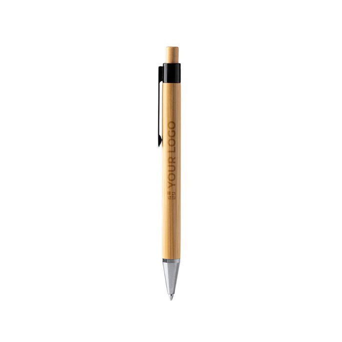 Penna di bambù con logo a scatto inchiostro blu