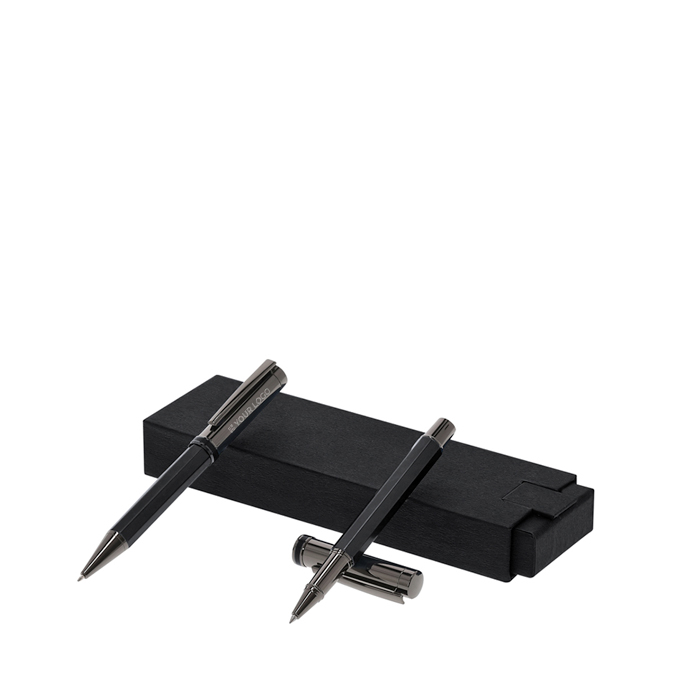 Elegante set di penna e roller con design a presa esagonale in colori metallici opachi e una parte superiore lucida. Progettate per risaltare negli eventi aziendali.