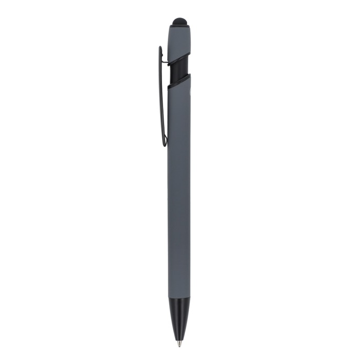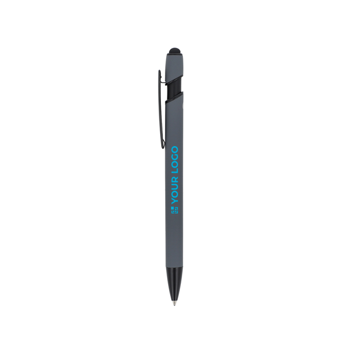 Penna in alluminio riciclato con finitura soft touch, pensata per un uso quotidiano comodo in ufficio e durante le riunioni. Integra la funzione stylus per usare gli schermi touch senza lasciare segni e aggiunge dettagli neri che conferiscono un aspetto aziendale discreto. La scrittura è con inchiostro blu, adatto per firme, appunti e documentazione interna. Superficie predisposta per la personalizzazione con il logo della tua azienda, utile in fiere, corsi di formazione o come materiale di benvenuto per i team.
