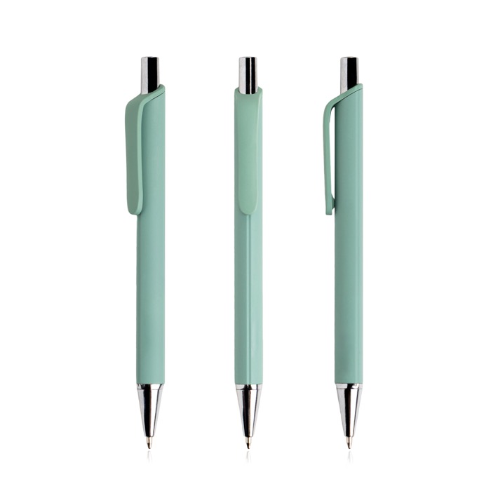 Penna con design ergonomico triangolare che offre una scrittura comoda per lunghi periodi. La finitura gommata offre una presa salda e antiscivolo. Disponibile in colori pastello, combina stile e funzionalità. Inchiostro nero.