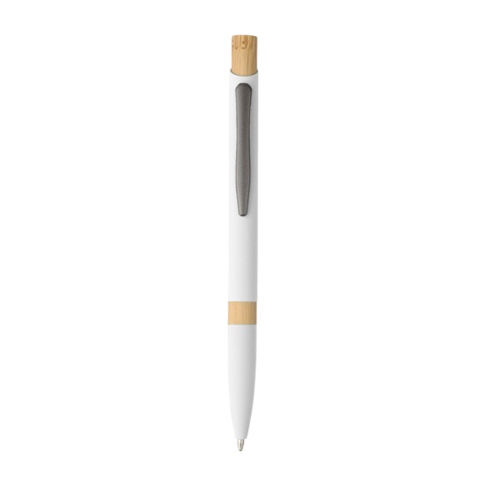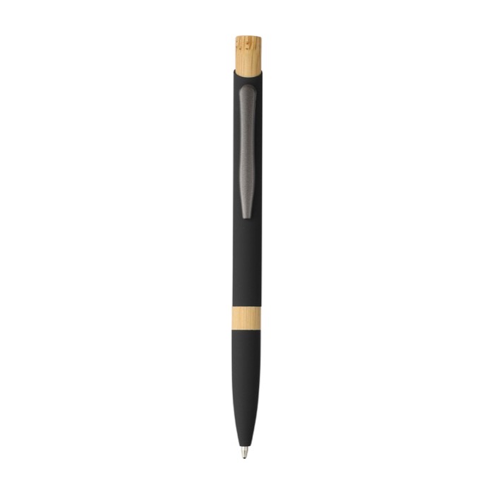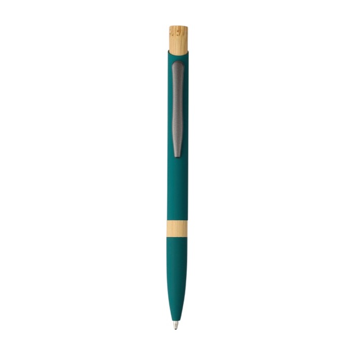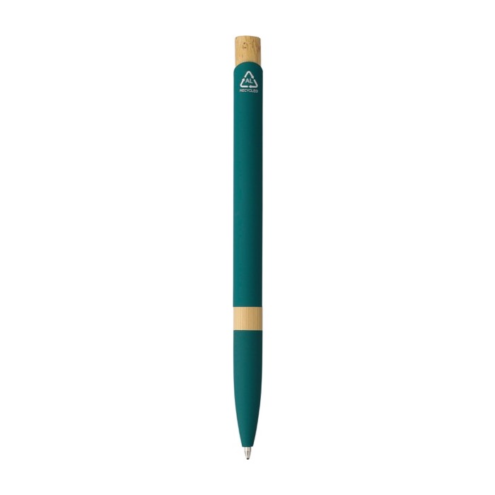Penna in alluminio riciclato con pulsante in bambù, elegante ecologica.