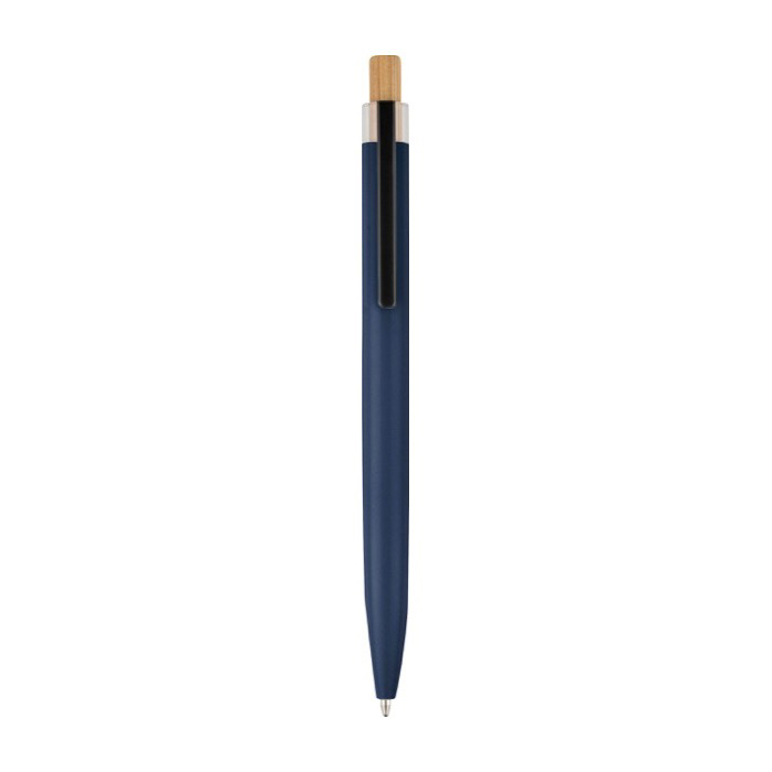 Penna in alluminio riciclato con pulsante in bambù, inchiostro blu