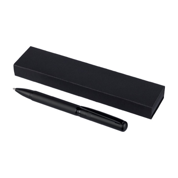 Penna a sfera in ottone con meccanismo a rotazione e clip metallica in tinta, pensata per l’uso quotidiano in ufficio e nel servizio clienti. Utilizza inchiostro blu Dokumental (inchiostro tedesco certificato per documenti) per un tratto costante e un’autonomia di scrittura di circa 1.000 metri. Viene fornita in confezione singola, presentata in un astuccio a scorrimento nero per una consegna a mano elegante o per spedizioni interne. Una soluzione pratica per attività di branding in fiere, corsi di formazione o welcome kit aziendali.