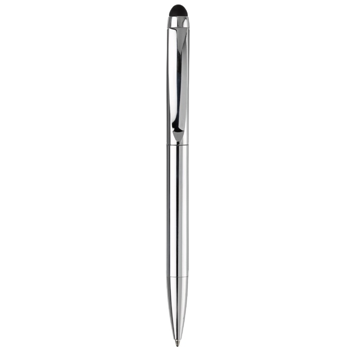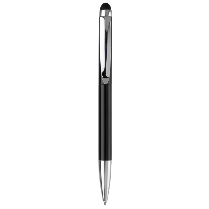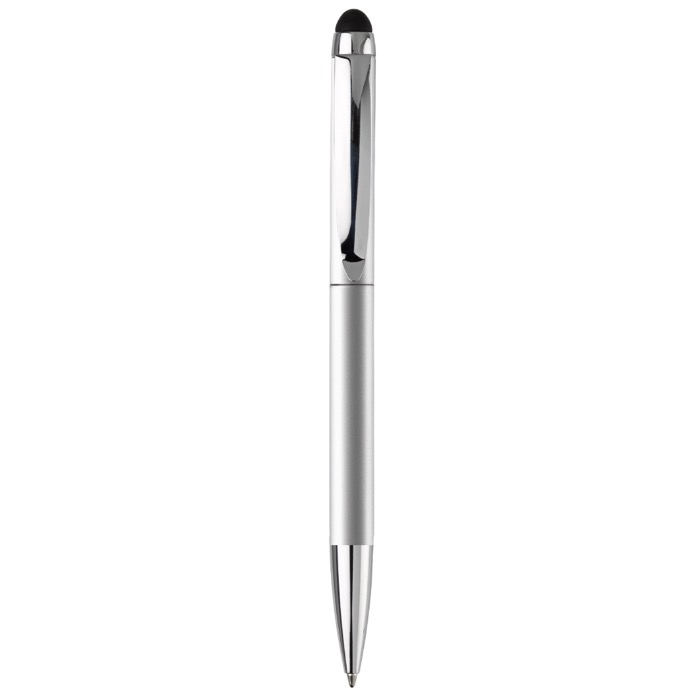 Penna a rotazione elegante, in alluminio, con gommino touch integrato.
