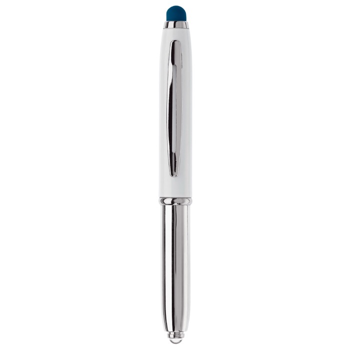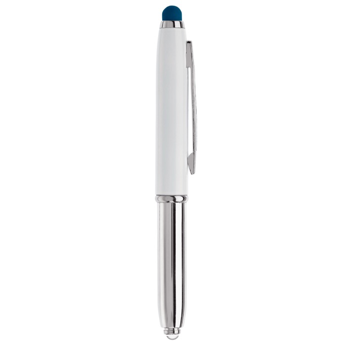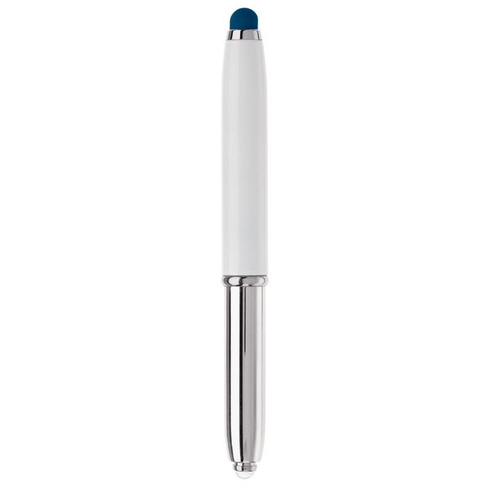 Penna touch cromata con cappuccio, luce a LED e inchiostro blu
