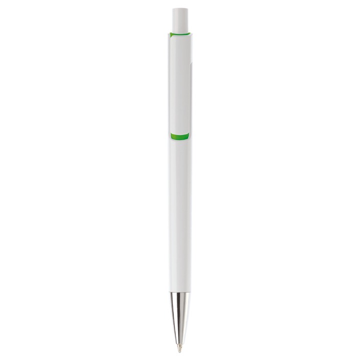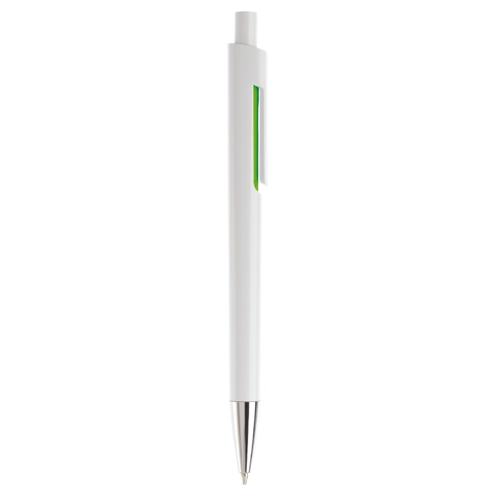 Penna in plastica bianca, elegante, con dettagli colorati sotto clip.