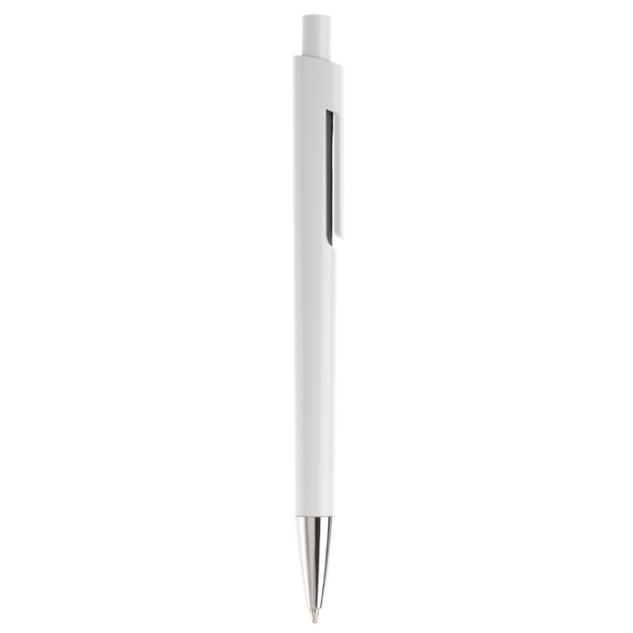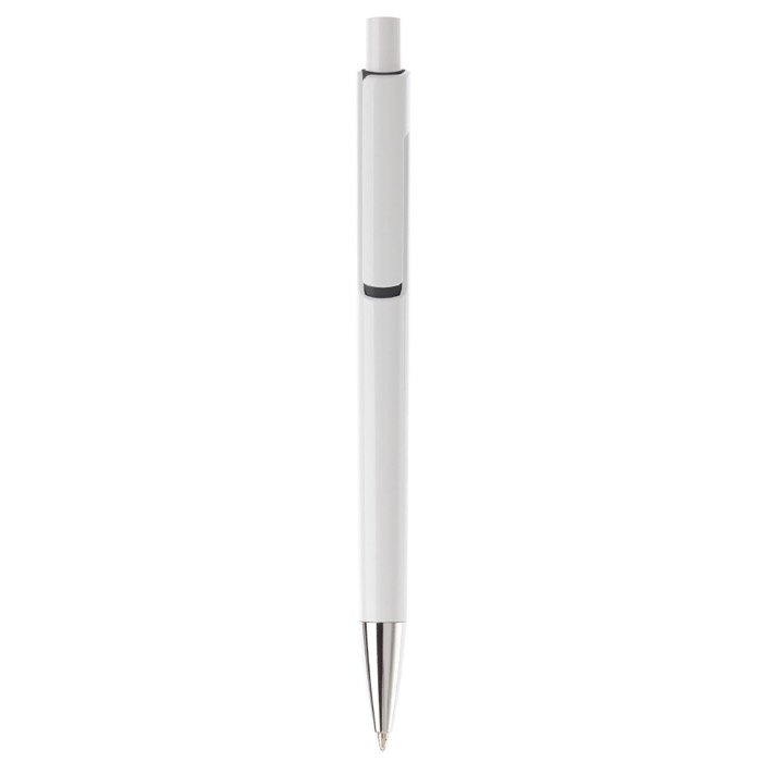 Per un regalo promozionale che metta in risalto il tuo marchio, scegli un'elegante penna in plastica bianca. Un dettaglio colorato sotto la clip aggiunge un tocco distintivo, permettendoti di personalizzare il gadget con i colori del tuo brand. L'inchiostro blu garantisce una scrittura fluida e affidabile. Questo accessorio è un modo efficace per comunicare attenzione ai dettagli e professionalità, rafforzando la percezione del tuo marchio come sofisticato e attento all'estetica, lasciando un'impressione positiva e duratura.