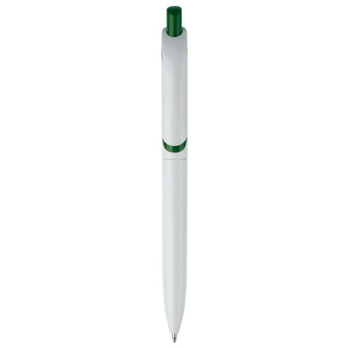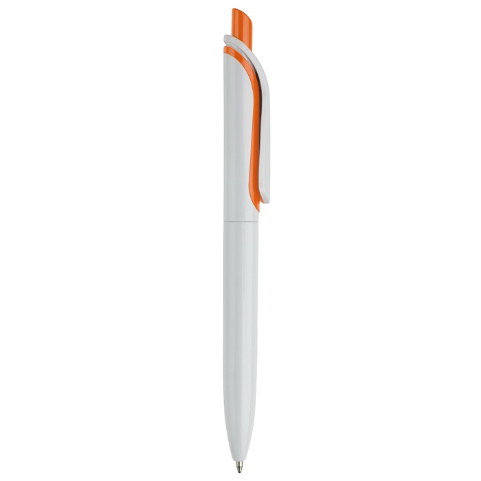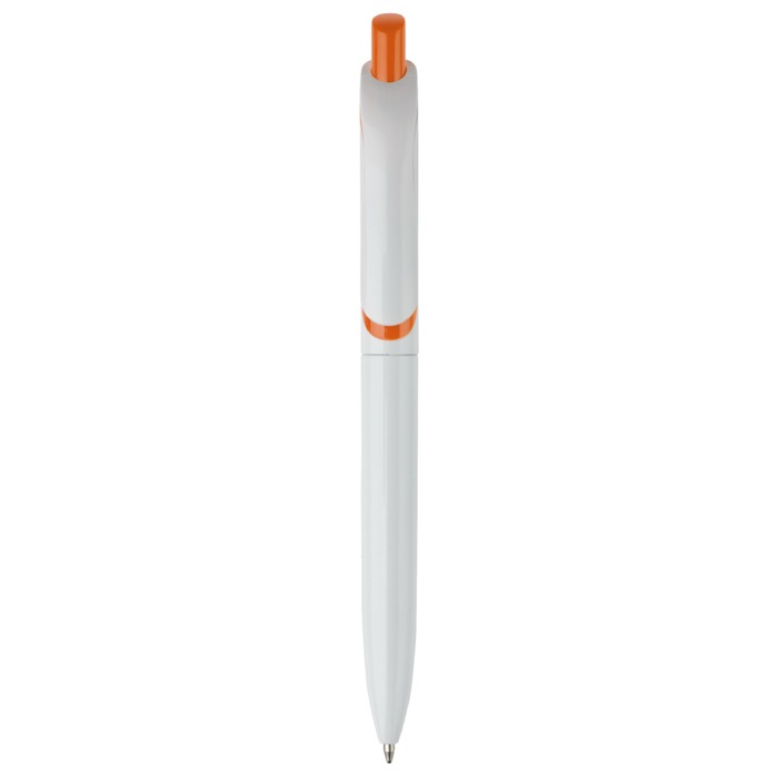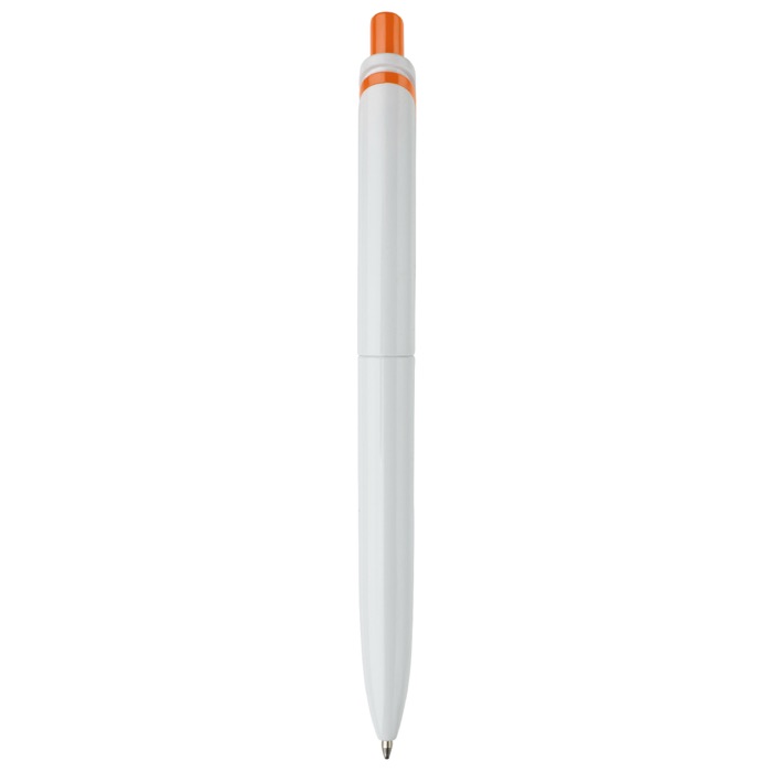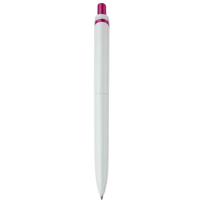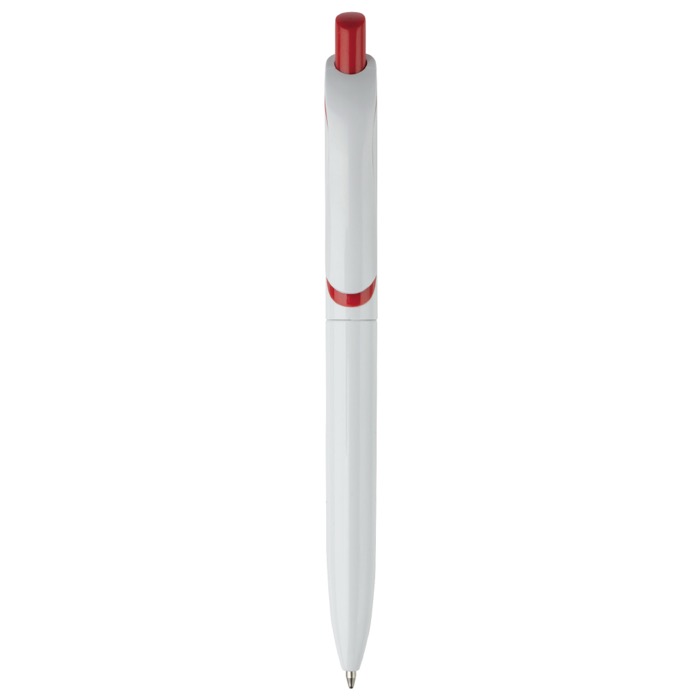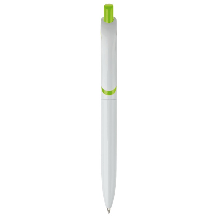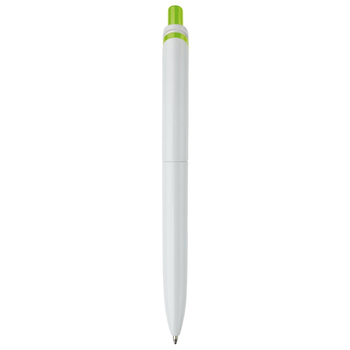 Penna in plastica bianca con pulsante in colori vivaci fatta in EU