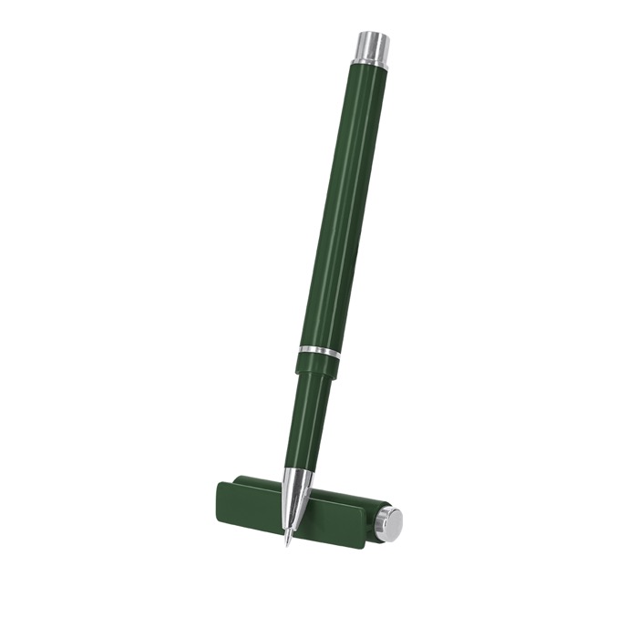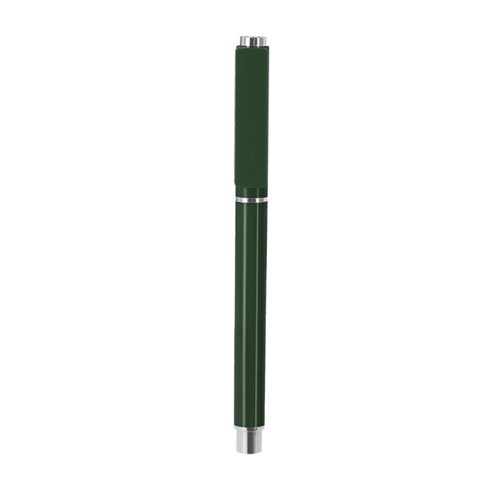 Roller in plastica riciclata con dettagli argentati e inchiostro blu