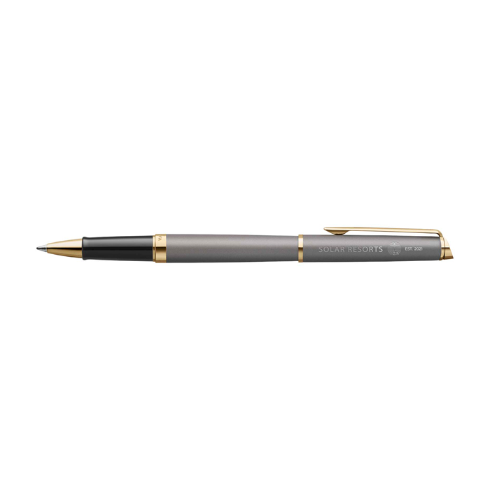 Penna a sfera in metallo con finitura laccata metallizzata, pensata per una scrittura quotidiana costante e una presenza discreta in ambienti aziendali. Il corpo e il cappuccio presentano dettagli dorati chiari e una clip doppia a due rami con il sigillo Waterman, con un design equilibrato che si adatta a riunioni, reception o firma di documenti. L’inchiostro nero ad asciugatura rapida aiuta a mantenere un tratto pulito e scorrevole. Prodotta in Francia, include garanzia internazionale di due anni e viene consegnata in confezione regalo Waterman. Consigliata per iniziative HR e come omaggio aziendale con logo.