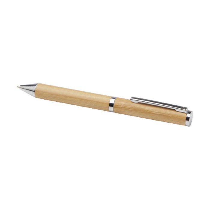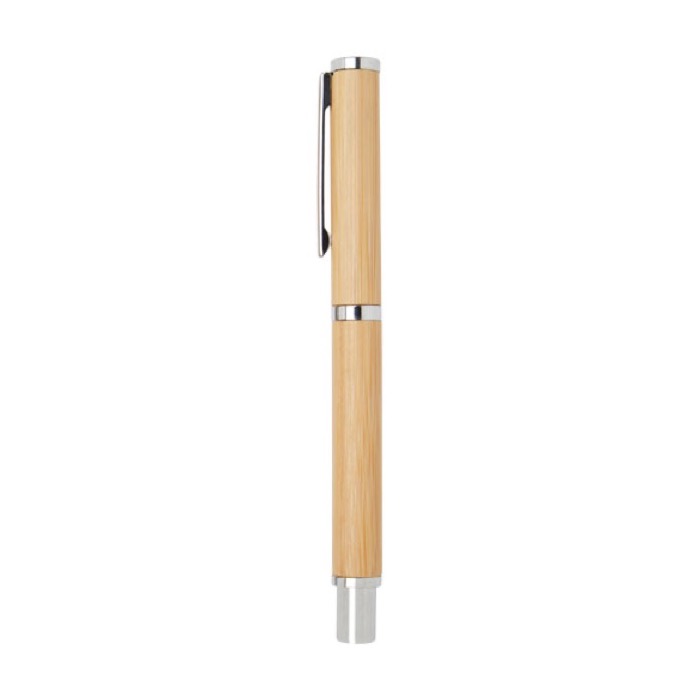 Penna a sfera pubblicitaria e roller in bambù e ottone inchiostro nero