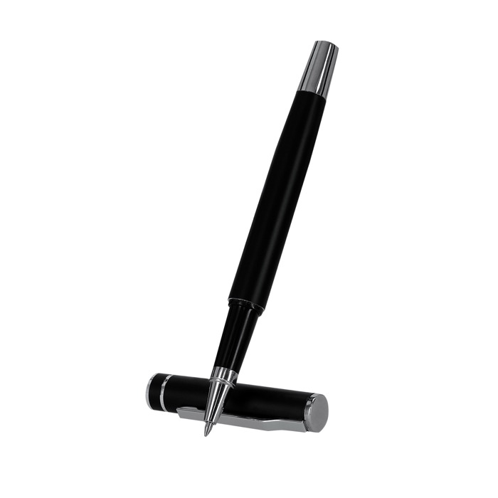 - Penna a scatto e roller con cappuccio, clip metallica