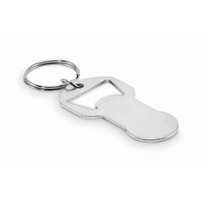 Portachiavi aziendale in alluminio lucido con apribottiglie