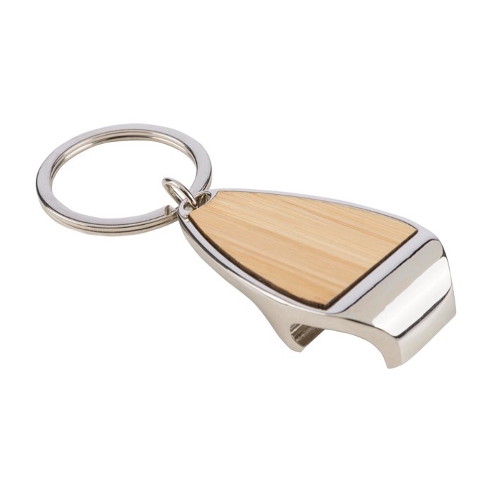 Portachiavi apribottiglie in lega di zinco con inserto in bambù
